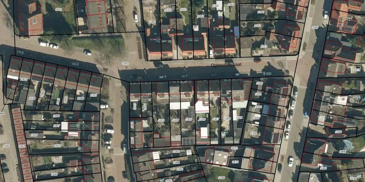 Ophoviusstraat 10 is gelegen op kadastraal perceel GDP00F1325. Deze kadastrale aanduiding is uniek en wordt gebruikt door het Kadaster om eigendomsrechten en andere zakelijke rechten vast te leggen. Het perceel maakt onderdeel uit van de kadastrale gemeente Geldrop.
