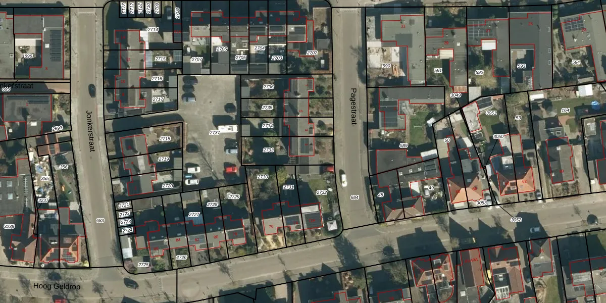 Pagestraat 1 is gelegen op kadastraal perceel GDP00E2733. Deze kadastrale aanduiding is uniek en wordt gebruikt door het Kadaster om eigendomsrechten en andere zakelijke rechten vast te leggen. Het perceel maakt onderdeel uit van de kadastrale gemeente Geldrop.
