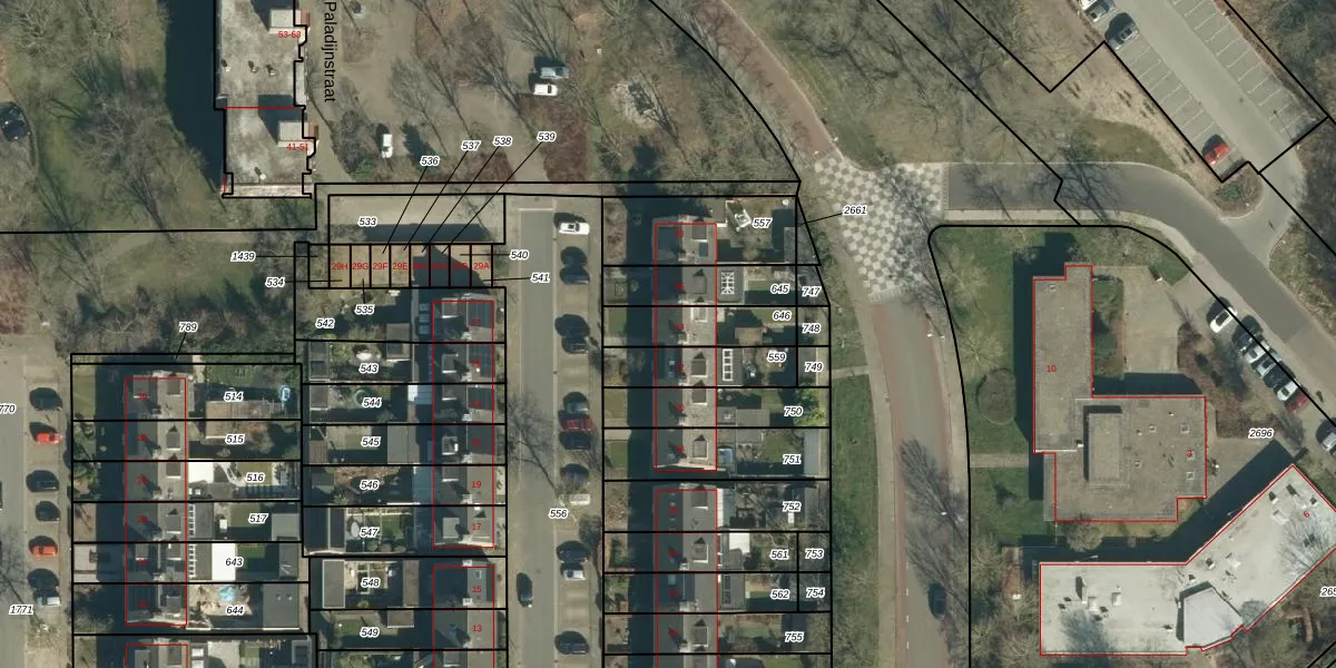 Paladijnstraat 24 is gelegen op kadastraal perceel GDP00E646. Deze kadastrale aanduiding is uniek en wordt gebruikt door het Kadaster om eigendomsrechten en andere zakelijke rechten vast te leggen. Het perceel maakt onderdeel uit van de kadastrale gemeente Geldrop.