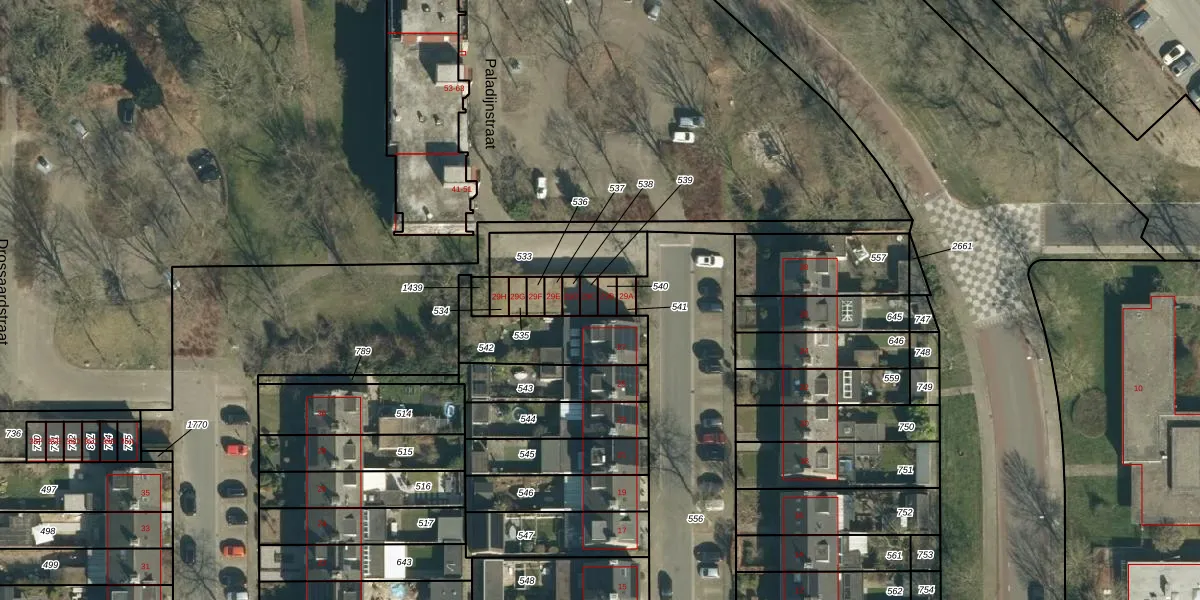 Paladijnstraat 29-B is gelegen op kadastraal perceel GDP00E540. Deze kadastrale aanduiding is uniek en wordt gebruikt door het Kadaster om eigendomsrechten en andere zakelijke rechten vast te leggen. Het perceel maakt onderdeel uit van de kadastrale gemeente Geldrop.