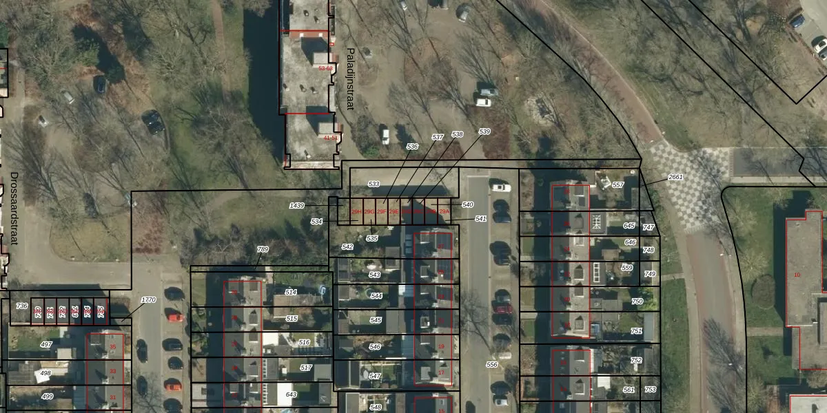 Paladijnstraat 29-C is gelegen op kadastraal perceel GDP00E539. Deze kadastrale aanduiding is uniek en wordt gebruikt door het Kadaster om eigendomsrechten en andere zakelijke rechten vast te leggen. Het perceel maakt onderdeel uit van de kadastrale gemeente Geldrop.