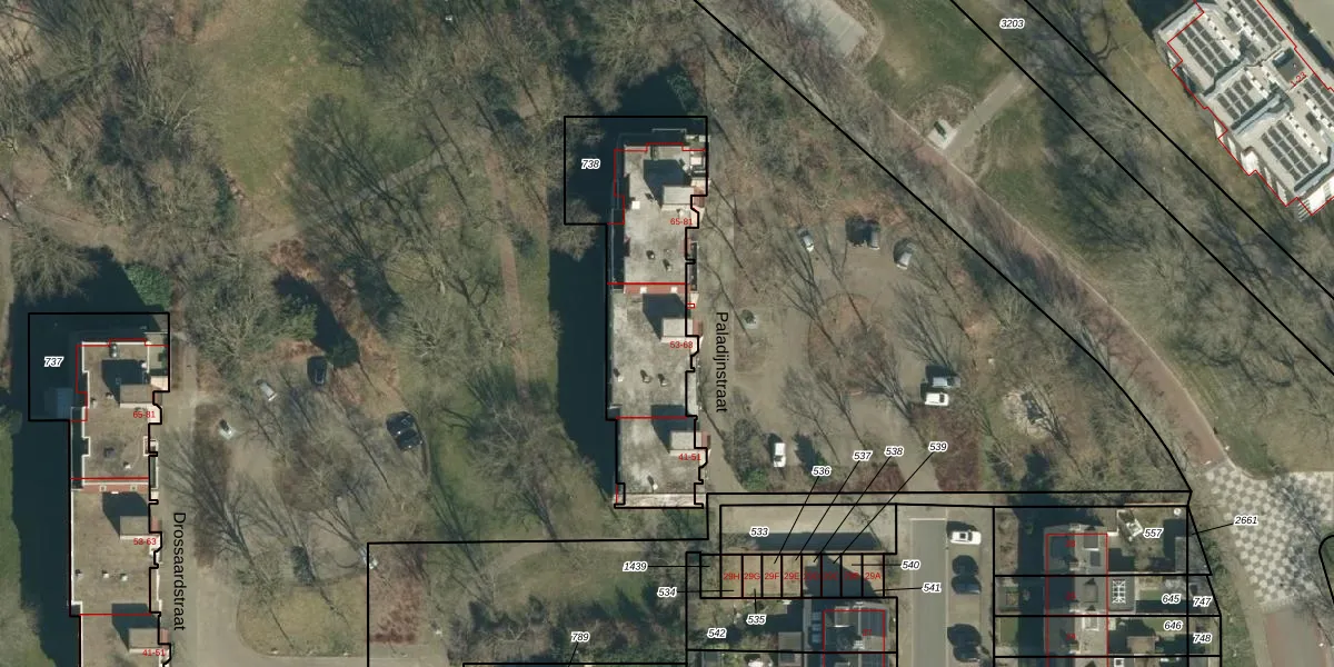 Paladijnstraat 57-A is gelegen op kadastraal perceel GDP00E738. Deze kadastrale aanduiding is uniek en wordt gebruikt door het Kadaster om eigendomsrechten en andere zakelijke rechten vast te leggen. Het perceel maakt onderdeel uit van de kadastrale gemeente Geldrop.