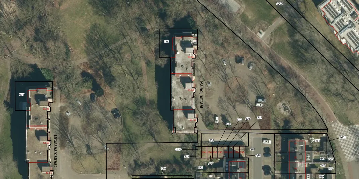 Paladijnstraat 59 is gelegen op kadastraal perceel GDP00E738. Deze kadastrale aanduiding is uniek en wordt gebruikt door het Kadaster om eigendomsrechten en andere zakelijke rechten vast te leggen. Het perceel maakt onderdeel uit van de kadastrale gemeente Geldrop.