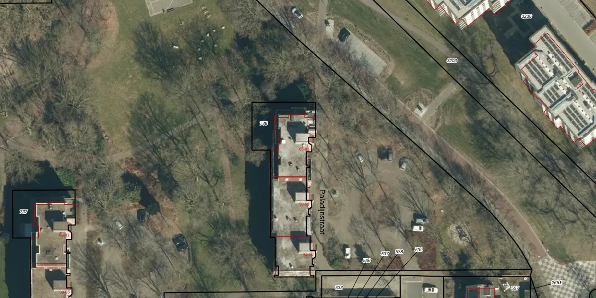 Paladijnstraat 67 is gelegen op kadastraal perceel GDP00E738. Deze kadastrale aanduiding is uniek en wordt gebruikt door het Kadaster om eigendomsrechten en andere zakelijke rechten vast te leggen. Het perceel maakt onderdeel uit van de kadastrale gemeente Geldrop.