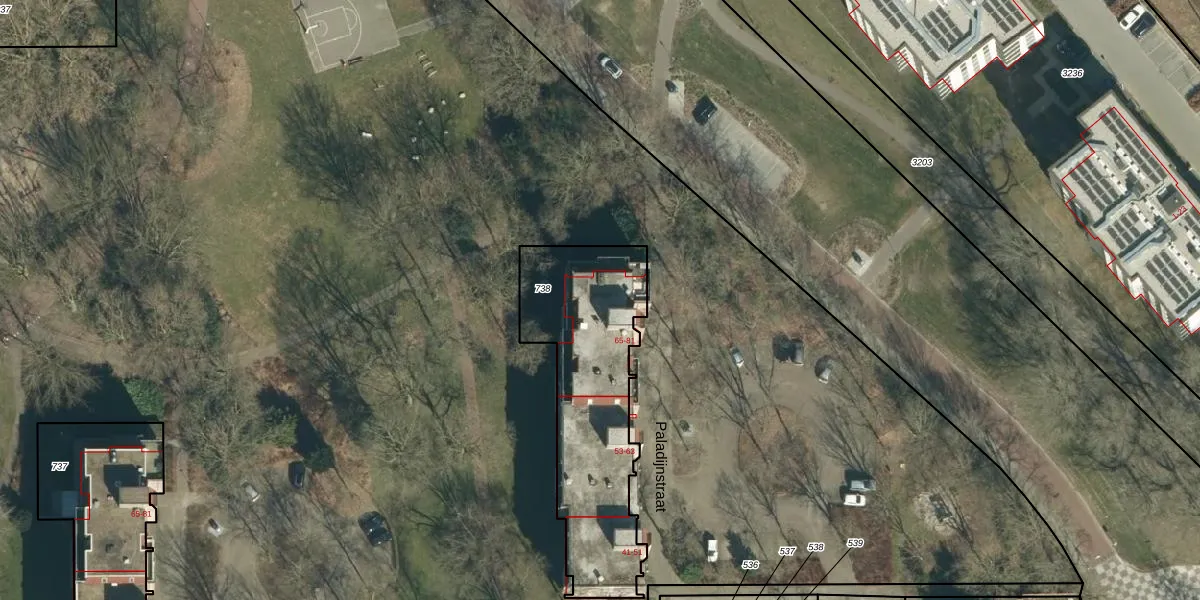 Paladijnstraat 73 is gelegen op kadastraal perceel GDP00E738. Deze kadastrale aanduiding is uniek en wordt gebruikt door het Kadaster om eigendomsrechten en andere zakelijke rechten vast te leggen. Het perceel maakt onderdeel uit van de kadastrale gemeente Geldrop.