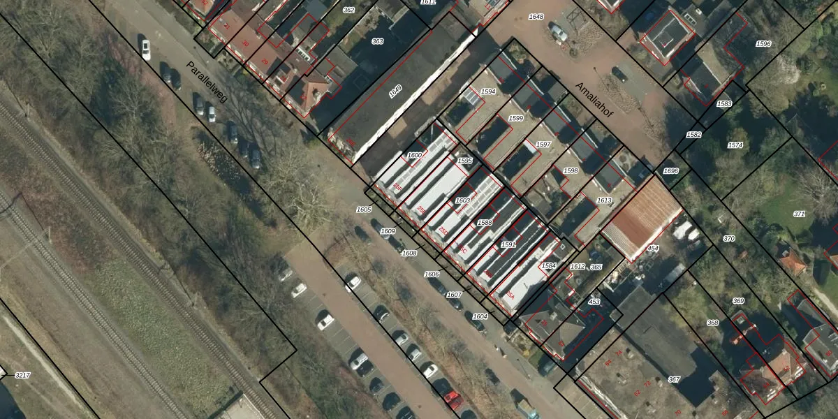 Parallelweg 25-E is gelegen op kadastraal perceel GDP00K1595. Deze kadastrale aanduiding is uniek en wordt gebruikt door het Kadaster om eigendomsrechten en andere zakelijke rechten vast te leggen. Het perceel maakt onderdeel uit van de kadastrale gemeente Geldrop.