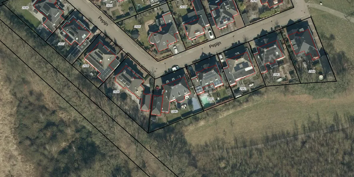 Het perceel waarop Pepijn 9 staat heeft een oppervlakte van 712 m². Dit is een groot perceel. De perceeloppervlakte wordt geregistreerd door het Kadaster. Gedetailleerde informatie over de maten van dit perceel kunt u vinden in het rapport Kadastrale kaart met maatvoering van Pepijn 9.