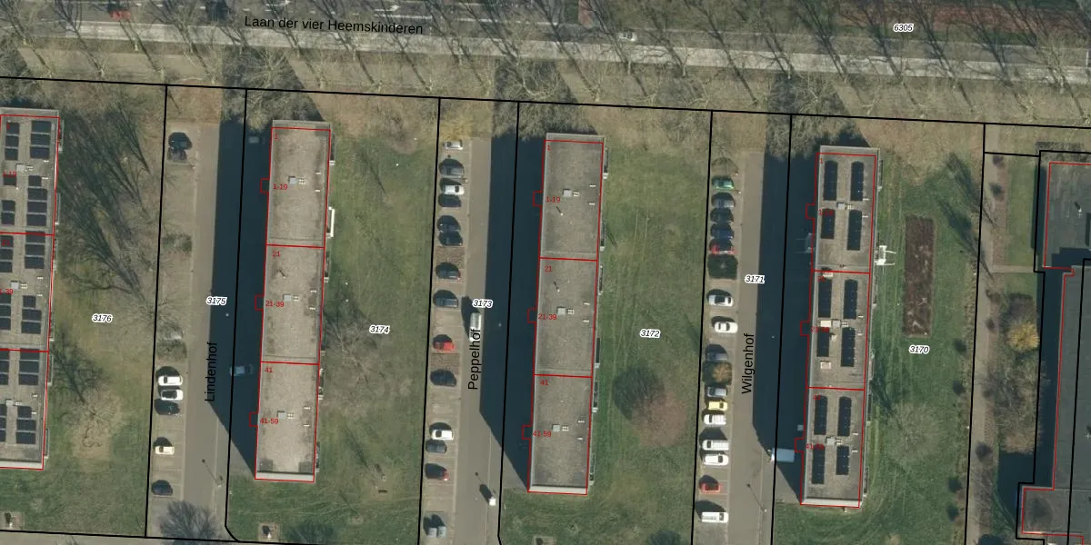 Het perceel waarop Peppelhof 21 staat heeft een oppervlakte van 2940 m². Dit is een zeer groot perceel. De perceeloppervlakte wordt geregistreerd door het Kadaster. Gedetailleerde informatie over de maten van dit perceel kunt u vinden in het rapport Kadastrale kaart met maatvoering van Peppelhof 21.