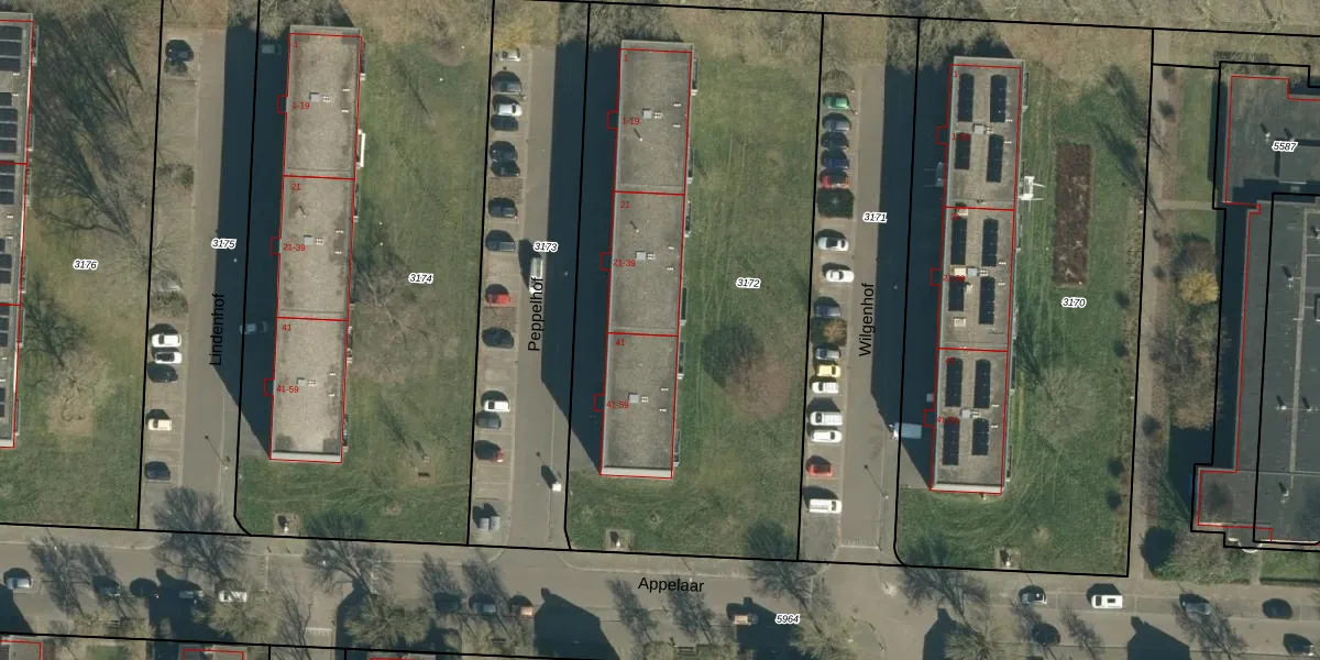 Het perceel waarop Peppelhof 35 staat heeft een oppervlakte van 2940 m². Dit is een zeer groot perceel. De perceeloppervlakte wordt geregistreerd door het Kadaster. Gedetailleerde informatie over de maten van dit perceel kunt u vinden in het rapport Kadastrale kaart met maatvoering van Peppelhof 35.
