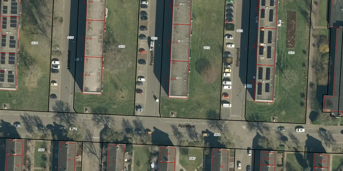 Het perceel waarop Peppelhof 57 staat heeft een oppervlakte van 2940 m². Dit is een zeer groot perceel. De perceeloppervlakte wordt geregistreerd door het Kadaster. Gedetailleerde informatie over de maten van dit perceel kunt u vinden in het rapport Kadastrale kaart met maatvoering van Peppelhof 57.