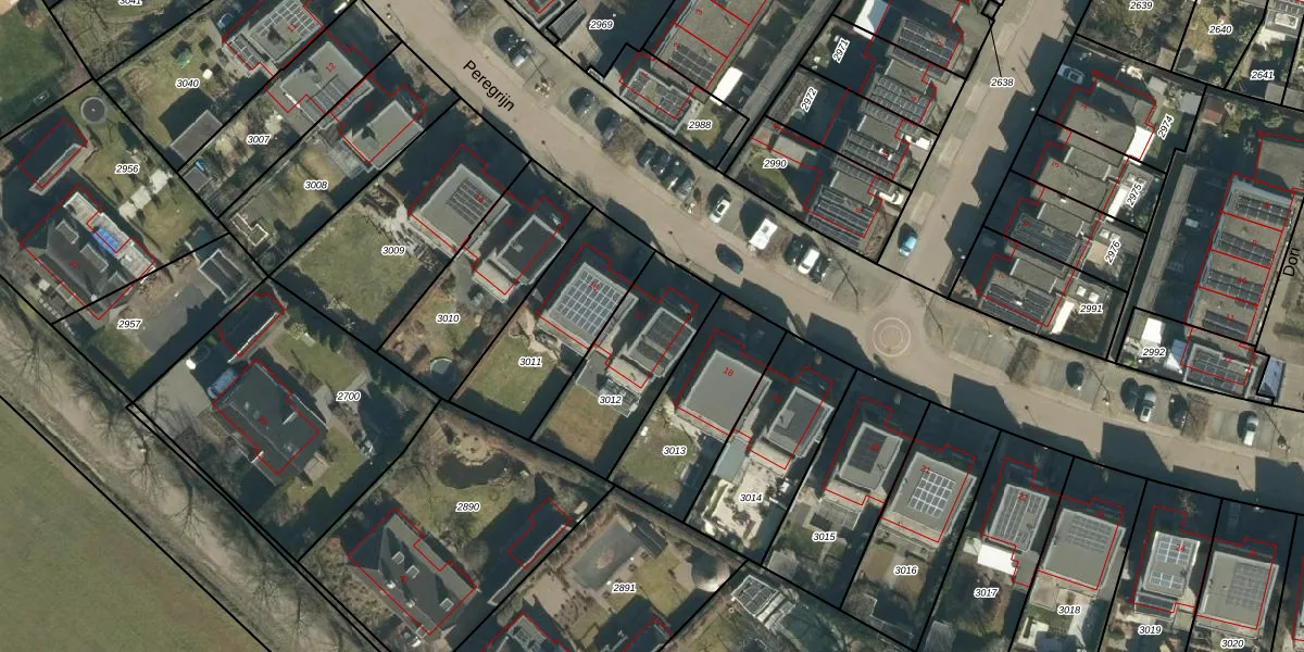 Het perceel waarop Peregrijn 17 staat heeft een oppervlakte van 434 m². Dit is een groot perceel. De perceeloppervlakte wordt geregistreerd door het Kadaster. Gedetailleerde informatie over de maten van dit perceel kunt u vinden in het rapport Kadastrale kaart met maatvoering van Peregrijn 17.