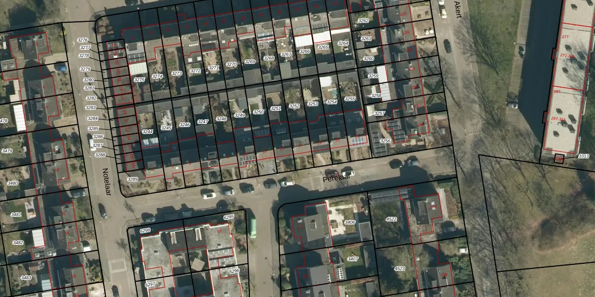 Gebruik de zoekbalk of klik op een perceel voor informatie over de adressen binnen dit perceel.