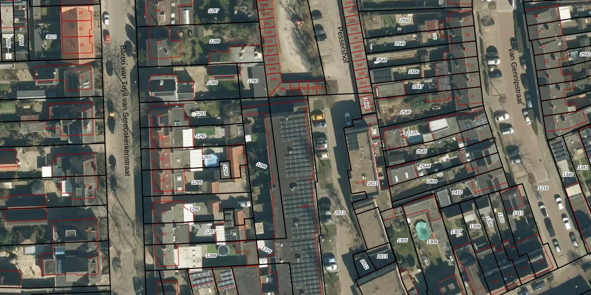 Pessershof 33 is gelegen op kadastraal perceel GDP00F1375. Deze kadastrale aanduiding is uniek en wordt gebruikt door het Kadaster om eigendomsrechten en andere zakelijke rechten vast te leggen. Het perceel maakt onderdeel uit van de kadastrale gemeente Geldrop.