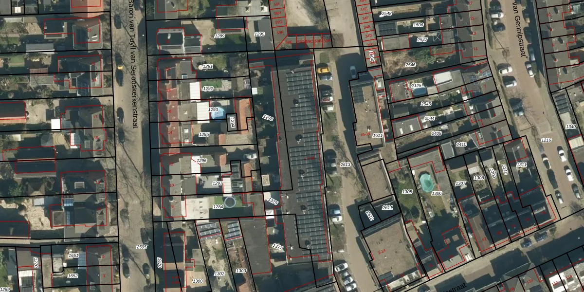 Het adres ligt op het perceel GDP00-F-1375, dat zich in de kadastrale gemeente Geldrop bevindt. Het perceel is kleiner dan gemiddeld in Geldrop. Het perceel is 1010 m² groot, terwijl het gemiddelde ligt op 1101,06 m². Het kleinste perceel in de kadastrale gemeente is 0 m² groot. De grootste perceeloppervlakte is 51,6 ha. Op het perceel zijn 22 adressen aanwezig. De huidige grenzen van het perceel zijn digitaal in de Basisregistratie Kadaster (BRK) geregistreerd op 18-06-2009.