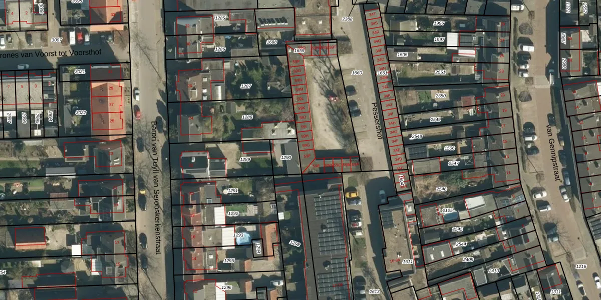 Pessershof 59-G is gelegen op kadastraal perceel GDP00F1659. Deze kadastrale aanduiding is uniek en wordt gebruikt door het Kadaster om eigendomsrechten en andere zakelijke rechten vast te leggen. Het perceel maakt onderdeel uit van de kadastrale gemeente Geldrop.