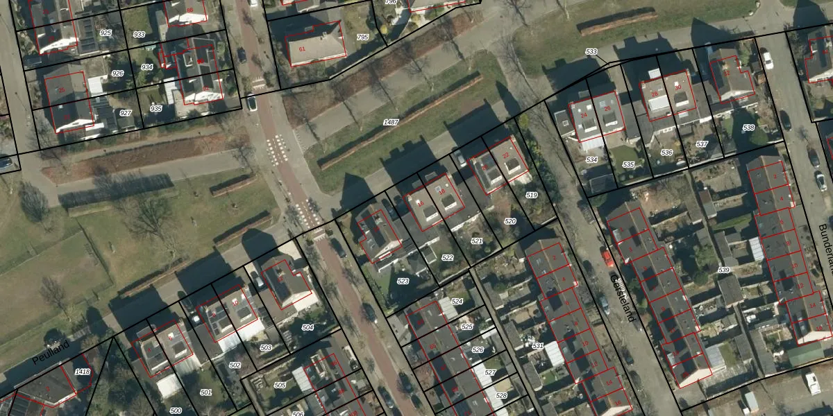 Het perceel waarop Peulland 16 staat heeft een oppervlakte van 237 m². Dit is een middelgroot perceel. De perceeloppervlakte wordt geregistreerd door het Kadaster. Gedetailleerde informatie over de maten van dit perceel kunt u vinden in het rapport Kadastrale kaart met maatvoering van Peulland 16.