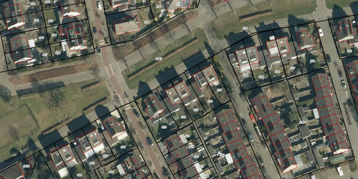 Het perceel waarop Peulland 18 staat heeft een oppervlakte van 233 m². Dit is een middelgroot perceel. De perceeloppervlakte wordt geregistreerd door het Kadaster. Gedetailleerde informatie over de maten van dit perceel kunt u vinden in het rapport Kadastrale kaart met maatvoering van Peulland 18.