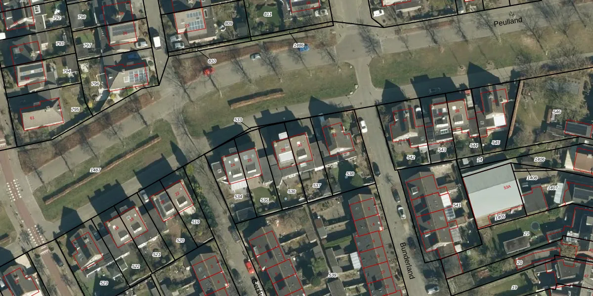 Peulland 30 is gelegen op kadastraal perceel GDP00K537. Deze kadastrale aanduiding is uniek en wordt gebruikt door het Kadaster om eigendomsrechten en andere zakelijke rechten vast te leggen. Het perceel maakt onderdeel uit van de kadastrale gemeente Geldrop.