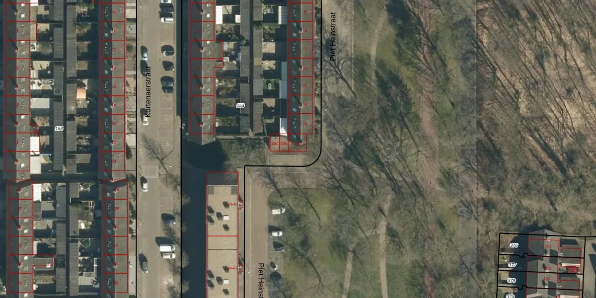 Het perceel waarop Piet Heinstraat 20-A staat heeft een oppervlakte van 4670 m². Dit is een zeer groot perceel. De perceeloppervlakte wordt geregistreerd door het Kadaster. Gedetailleerde informatie over de maten van dit perceel kunt u vinden in het rapport Kadastrale kaart met maatvoering van Piet Heinstraat 20-A.