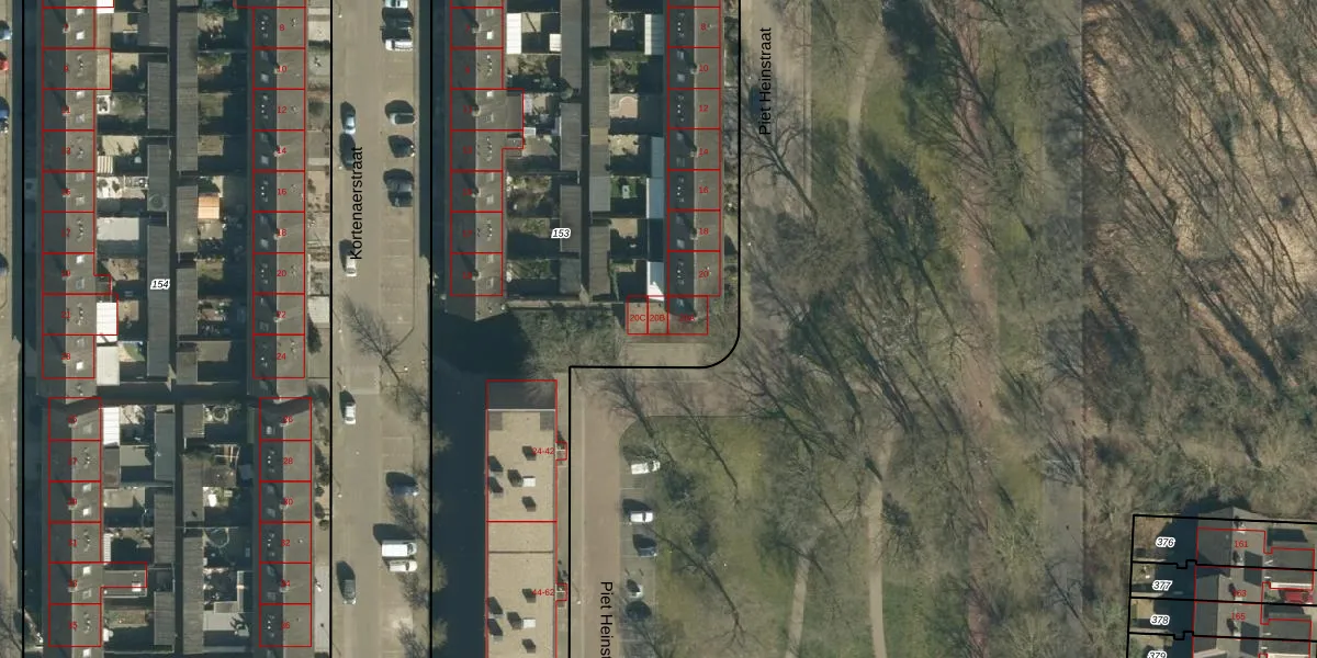 Piet Heinstraat 20-B is gelegen op kadastraal perceel GDP00F153. Deze kadastrale aanduiding is uniek en wordt gebruikt door het Kadaster om eigendomsrechten en andere zakelijke rechten vast te leggen. Het perceel maakt onderdeel uit van de kadastrale gemeente Geldrop.