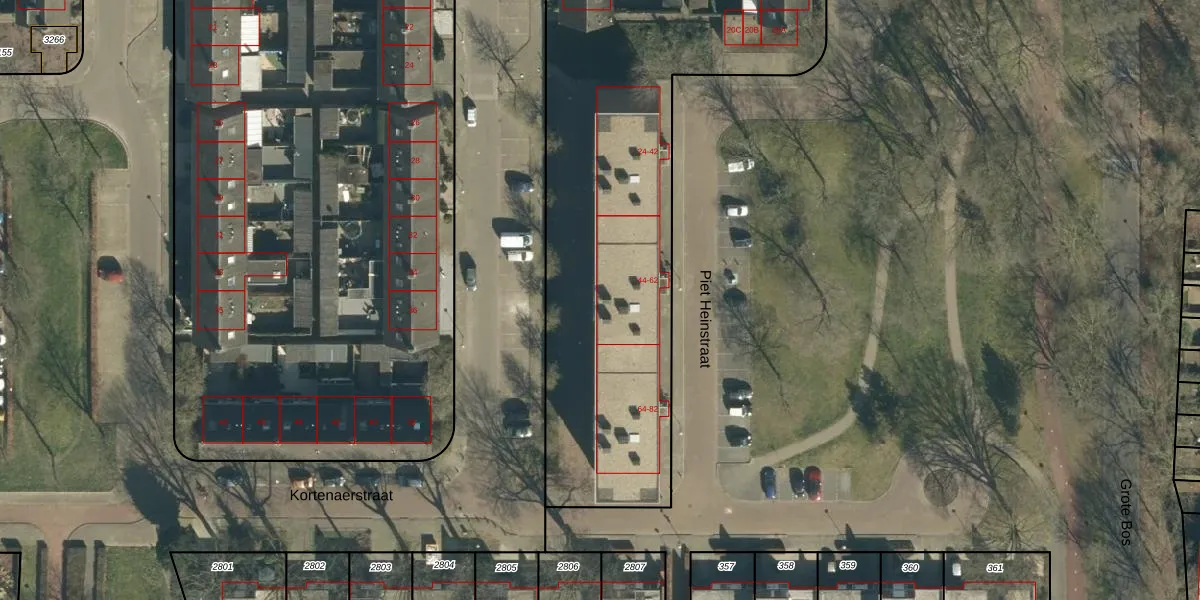 Het perceel waarop Piet Heinstraat 58 staat heeft een oppervlakte van 4670 m². Dit is een zeer groot perceel. De perceeloppervlakte wordt geregistreerd door het Kadaster. Gedetailleerde informatie over de maten van dit perceel kunt u vinden in het rapport Kadastrale kaart met maatvoering van Piet Heinstraat 58.