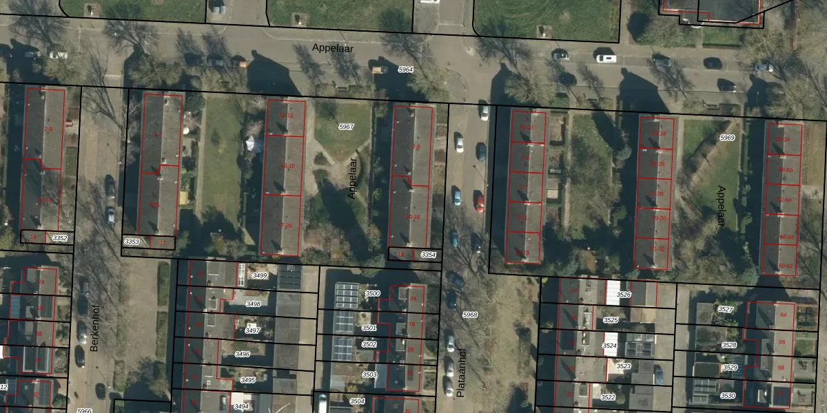 Plataanhof 10 is gelegen op kadastraal perceel GDP00D5967. Deze kadastrale aanduiding is uniek en wordt gebruikt door het Kadaster om eigendomsrechten en andere zakelijke rechten vast te leggen. Het perceel maakt onderdeel uit van de kadastrale gemeente Geldrop.