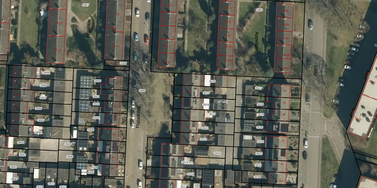 Plataanhof 19 is gelegen op kadastraal perceel GDP00D3525. Deze kadastrale aanduiding is uniek en wordt gebruikt door het Kadaster om eigendomsrechten en andere zakelijke rechten vast te leggen. Het perceel maakt onderdeel uit van de kadastrale gemeente Geldrop.