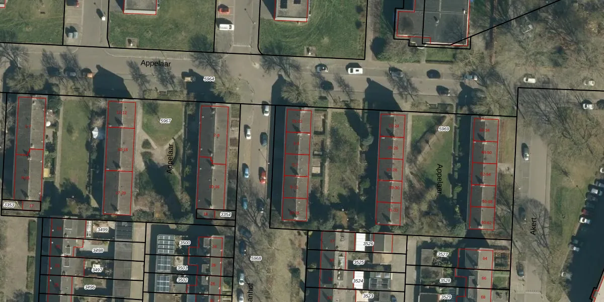 Het adres ligt op het perceel GDP00-D-5969, dat zich in de kadastrale gemeente Geldrop bevindt. Het perceel is met 3285 m² relatief groot. Het gemiddelde ligt in de kadastrale gemeente Geldrop op 1101,15 m². Het kleinste perceel in de kadastrale gemeente is 0 m² groot. De grootste perceeloppervlakte is 51,6 ha. Er zijn 30 adressen aanwezig op het perceel. De huidige grenzen van het perceel zijn digitaal in de Basisregistratie Kadaster (BRK) geregistreerd op 09-06-2009.
