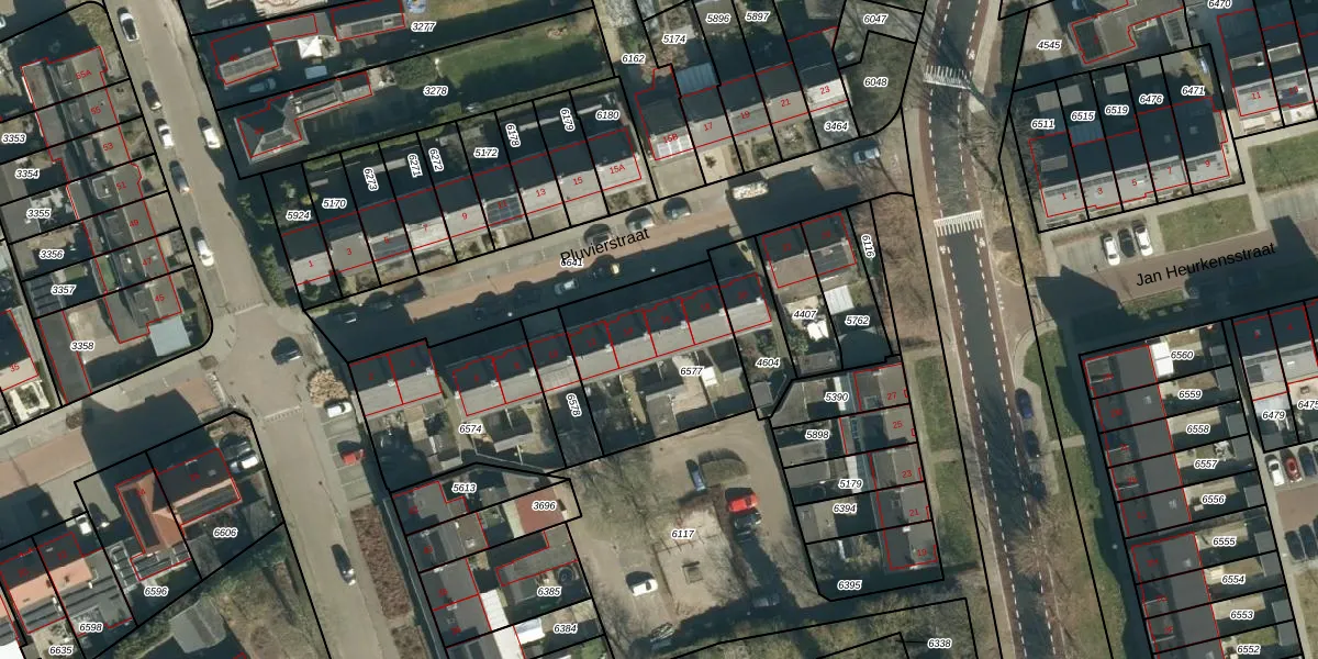 Pluvierstraat 16 is gelegen op kadastraal perceel GDP00C6577. Deze kadastrale aanduiding is uniek en wordt gebruikt door het Kadaster om eigendomsrechten en andere zakelijke rechten vast te leggen. Het perceel maakt onderdeel uit van de kadastrale gemeente Geldrop.