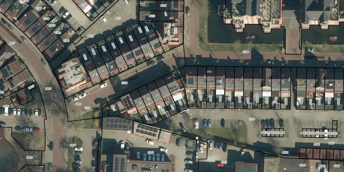 Het perceel waarop Poort 1 staat heeft een oppervlakte van 183 m². Dit is een middelgroot perceel. De perceeloppervlakte wordt geregistreerd door het Kadaster. Gedetailleerde informatie over de maten van dit perceel kunt u vinden in het rapport Kadastrale kaart met maatvoering van Poort 1.