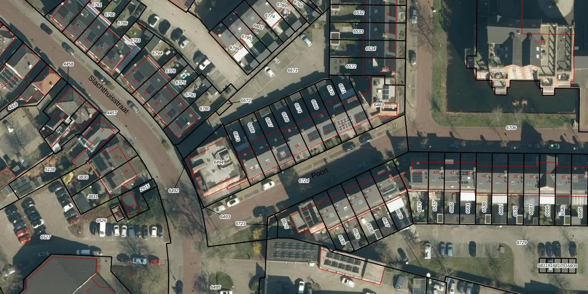 Het perceel waarop Poort 16 staat heeft een oppervlakte van 127 m². Dit is een middelgroot perceel. De perceeloppervlakte wordt geregistreerd door het Kadaster. Gedetailleerde informatie over de maten van dit perceel kunt u vinden in het rapport Kadastrale kaart met maatvoering van Poort 16.