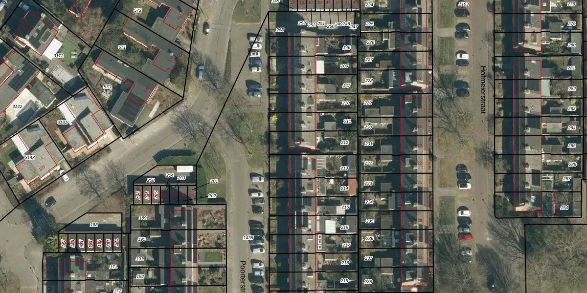 Het perceel waarop Poorterstraat 13 staat heeft een oppervlakte van 244 m². Dit is een middelgroot perceel. De perceeloppervlakte wordt geregistreerd door het Kadaster. Gedetailleerde informatie over de maten van dit perceel kunt u vinden in het rapport Kadastrale kaart met maatvoering van Poorterstraat 13.