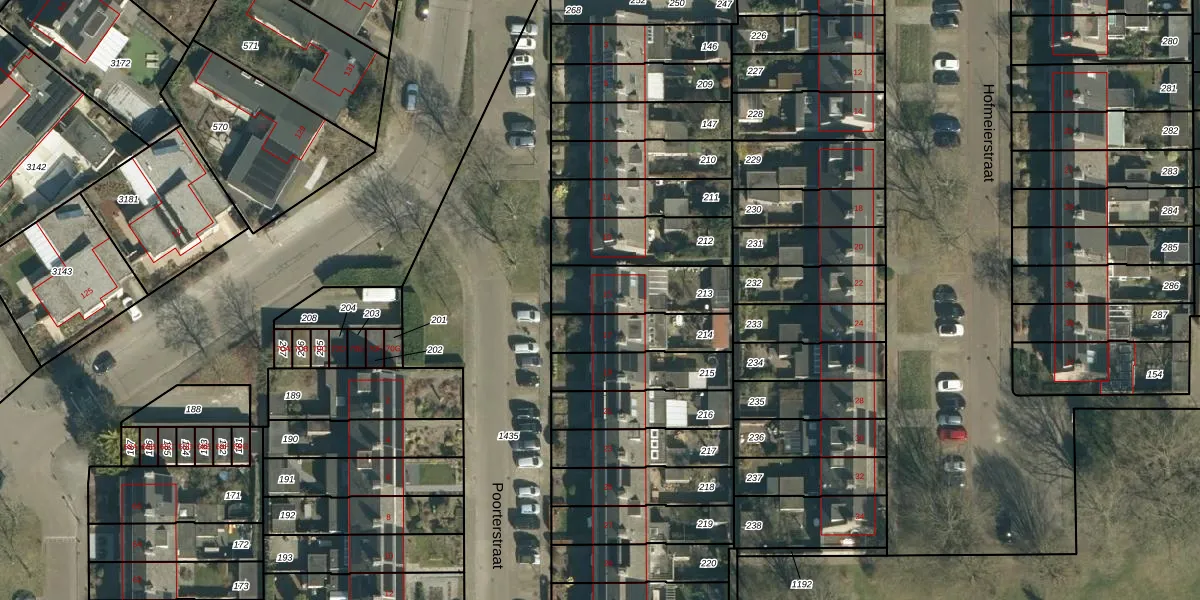Het perceel waarop Poorterstraat 15 staat heeft een oppervlakte van 244 m². Dit is een middelgroot perceel. De perceeloppervlakte wordt geregistreerd door het Kadaster. Gedetailleerde informatie over de maten van dit perceel kunt u vinden in het rapport Kadastrale kaart met maatvoering van Poorterstraat 15.