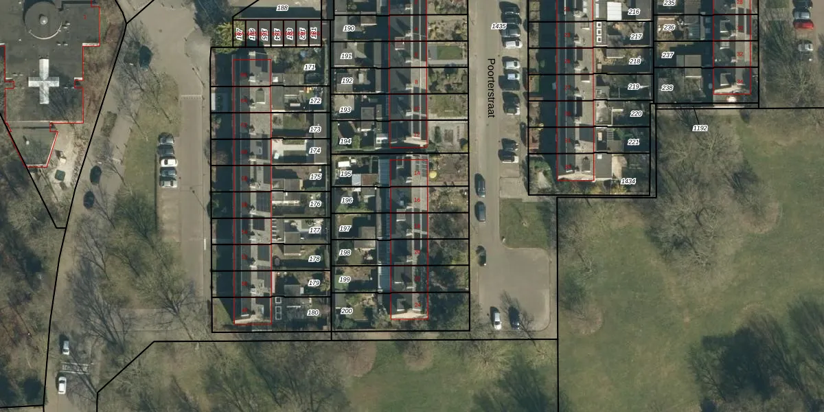 Poorterstraat 16 is gelegen op kadastraal perceel GDP00E196. Deze kadastrale aanduiding is uniek en wordt gebruikt door het Kadaster om eigendomsrechten en andere zakelijke rechten vast te leggen. Het perceel maakt onderdeel uit van de kadastrale gemeente Geldrop.