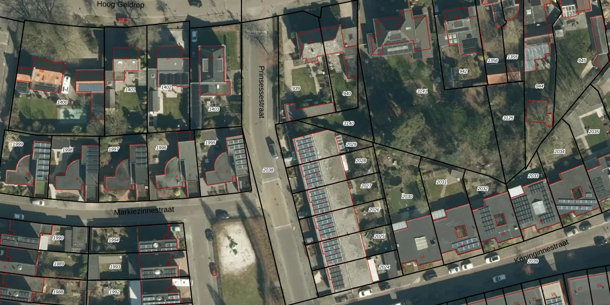 Prinsessestraat 12 is gelegen op kadastraal perceel GDP00E2029. Deze kadastrale aanduiding is uniek en wordt gebruikt door het Kadaster om eigendomsrechten en andere zakelijke rechten vast te leggen. Het perceel maakt onderdeel uit van de kadastrale gemeente Geldrop.