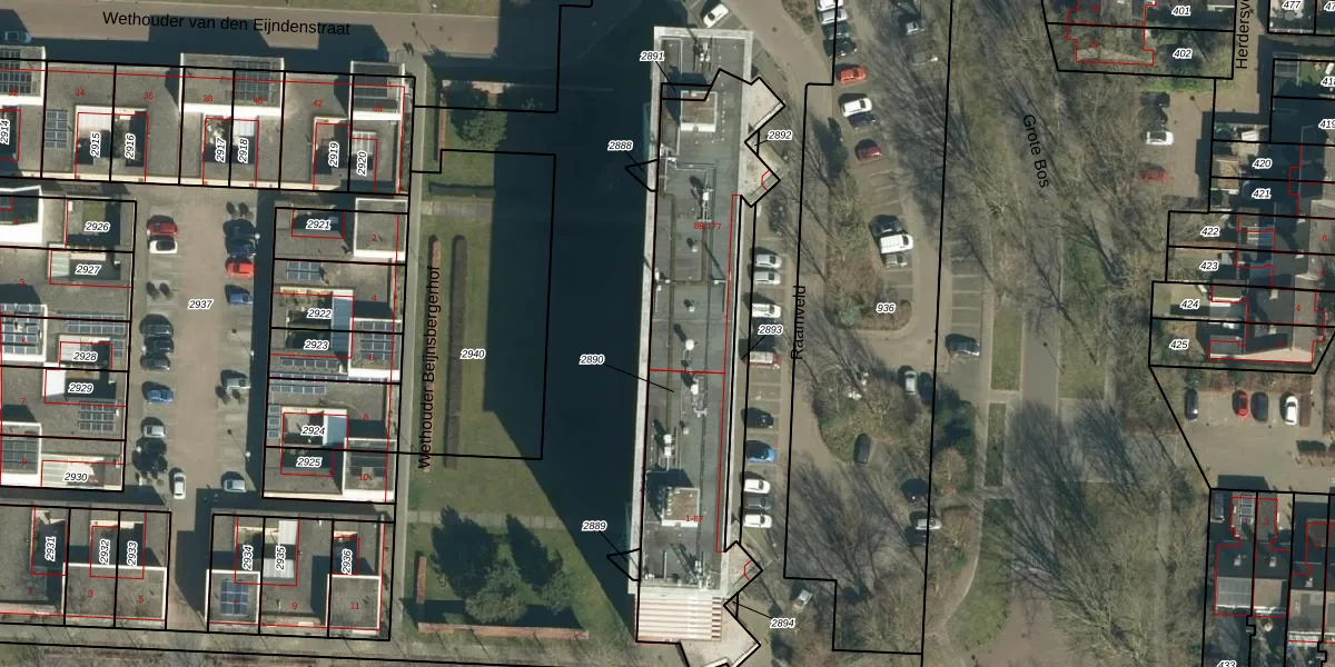 Het perceel waarop het adres ligt is GDP00-F-2890. De afkorting 'GDP00' staat voor kadastrale gemeente Geldrop. Het perceel is met 1192 m² relatief groot. Het gemiddelde ligt in de kadastrale gemeente Geldrop op 1101,15 m². Het grootste perceel in de kadastrale gemeente is 51,6 ha. Het kleinste perceel heeft een oppervlakte van 0 m². Er zijn 88 adressen aanwezig op het perceel. De huidige grenzen van het perceel zijn digitaal in de Basisregistratie Kadaster (BRK) geregistreerd op 15-06-2009.