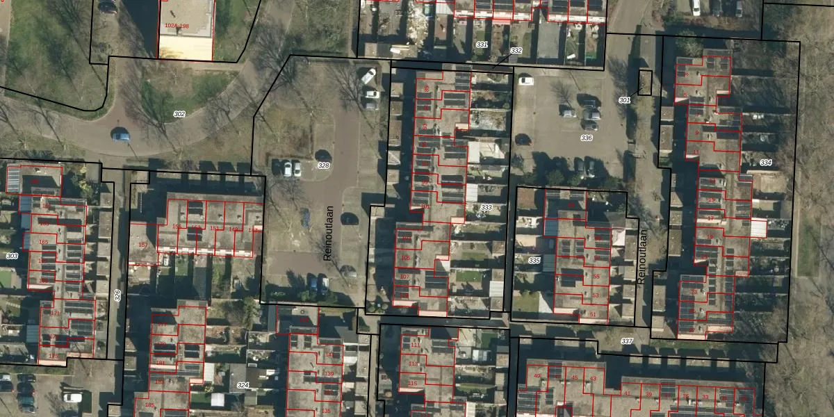 Reinoutlaan 101 is gelegen op kadastraal perceel GDP00F333. Deze kadastrale aanduiding is uniek en wordt gebruikt door het Kadaster om eigendomsrechten en andere zakelijke rechten vast te leggen. Het perceel maakt onderdeel uit van de kadastrale gemeente Geldrop.