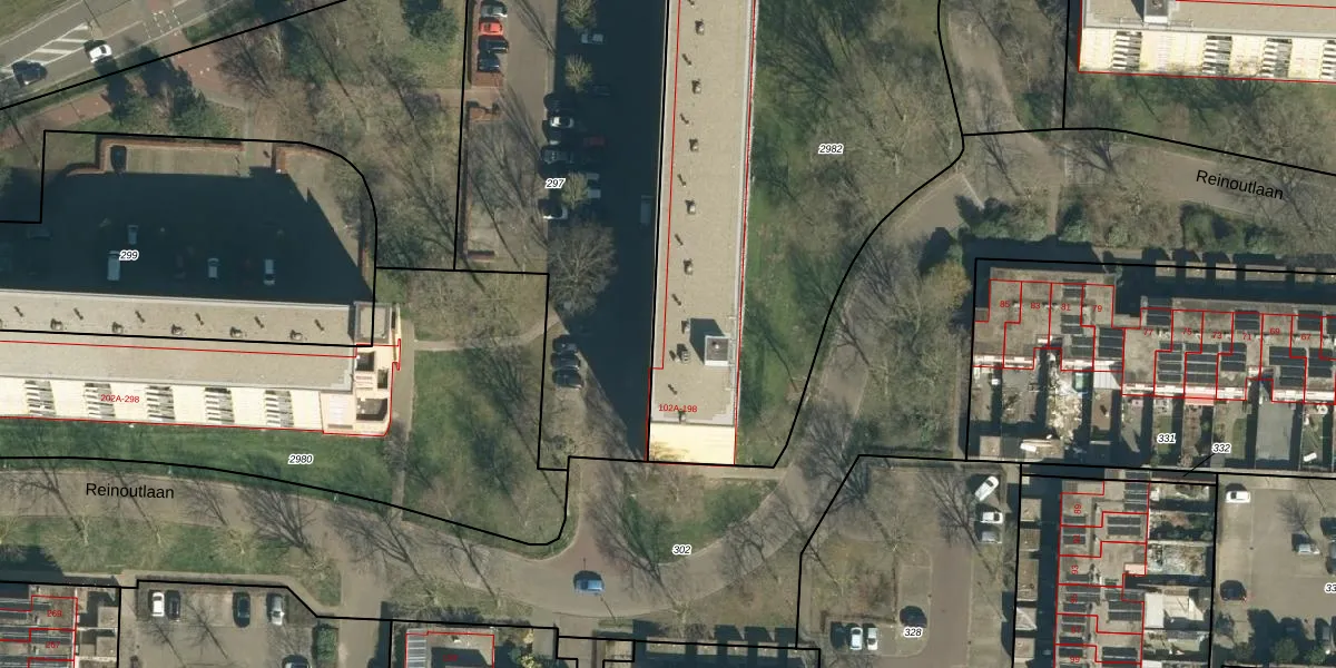 Reinoutlaan 102-B is gelegen op kadastraal perceel GDP00F2982. Deze kadastrale aanduiding is uniek en wordt gebruikt door het Kadaster om eigendomsrechten en andere zakelijke rechten vast te leggen. Het perceel maakt onderdeel uit van de kadastrale gemeente Geldrop.