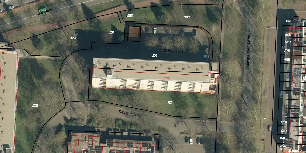 Het perceel waarop Reinoutlaan 12 staat heeft een oppervlakte van 2204 m². Dit is een zeer groot perceel. De perceeloppervlakte wordt geregistreerd door het Kadaster. Gedetailleerde informatie over de maten van dit perceel kunt u vinden in het rapport Kadastrale kaart met maatvoering van Reinoutlaan 12.
