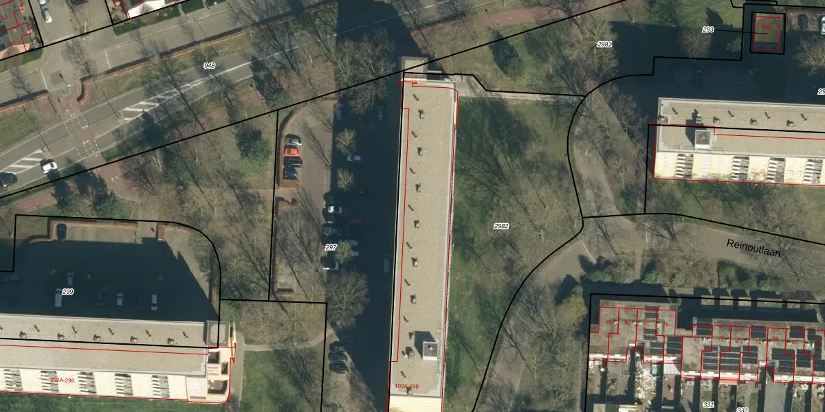 Het perceel waarop Reinoutlaan 128 staat heeft een oppervlakte van 2820 m². Dit is een zeer groot perceel. De perceeloppervlakte wordt geregistreerd door het Kadaster. Gedetailleerde informatie over de maten van dit perceel kunt u vinden in het rapport Kadastrale kaart met maatvoering van Reinoutlaan 128.