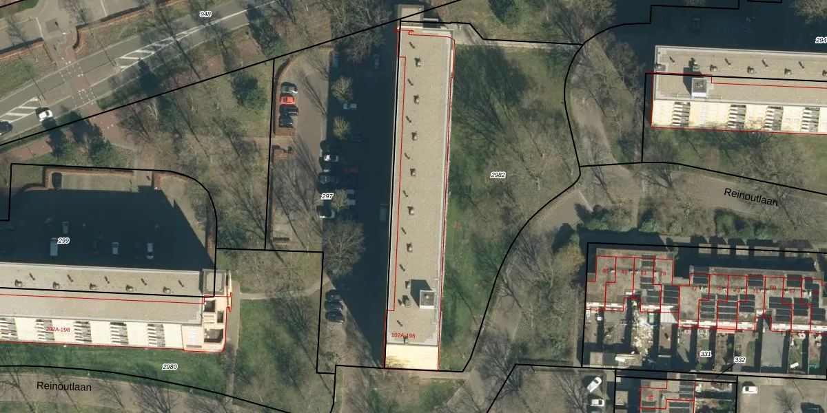 Reinoutlaan 142 is gelegen op kadastraal perceel GDP00F2982. Deze kadastrale aanduiding is uniek en wordt gebruikt door het Kadaster om eigendomsrechten en andere zakelijke rechten vast te leggen. Het perceel maakt onderdeel uit van de kadastrale gemeente Geldrop.