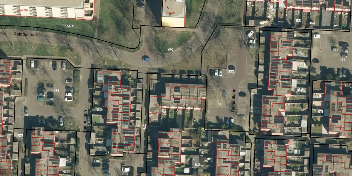 Reinoutlaan 153 is gelegen op kadastraal perceel GDP00F324. Deze kadastrale aanduiding is uniek en wordt gebruikt door het Kadaster om eigendomsrechten en andere zakelijke rechten vast te leggen. Het perceel maakt onderdeel uit van de kadastrale gemeente Geldrop.