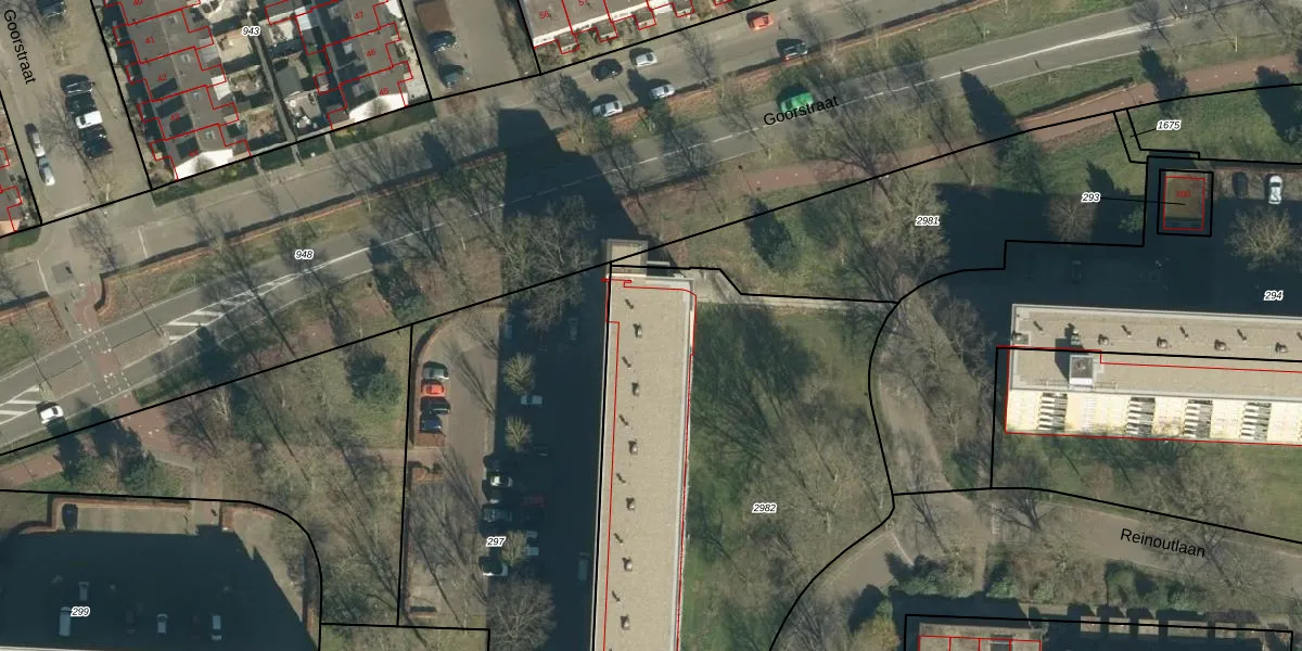 Reinoutlaan 166 is gelegen op kadastraal perceel GDP00F2982. Deze kadastrale aanduiding is uniek en wordt gebruikt door het Kadaster om eigendomsrechten en andere zakelijke rechten vast te leggen. Het perceel maakt onderdeel uit van de kadastrale gemeente Geldrop.