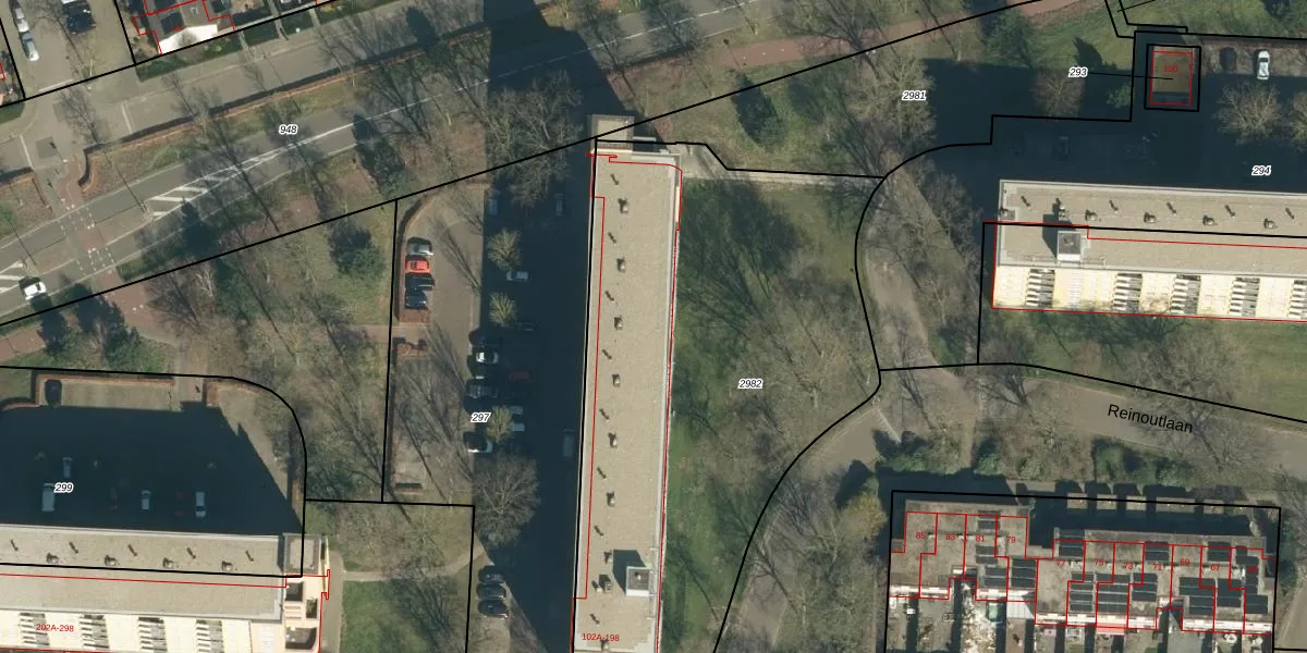 Reinoutlaan 194 is gelegen op kadastraal perceel GDP00F2982. Deze kadastrale aanduiding is uniek en wordt gebruikt door het Kadaster om eigendomsrechten en andere zakelijke rechten vast te leggen. Het perceel maakt onderdeel uit van de kadastrale gemeente Geldrop.
