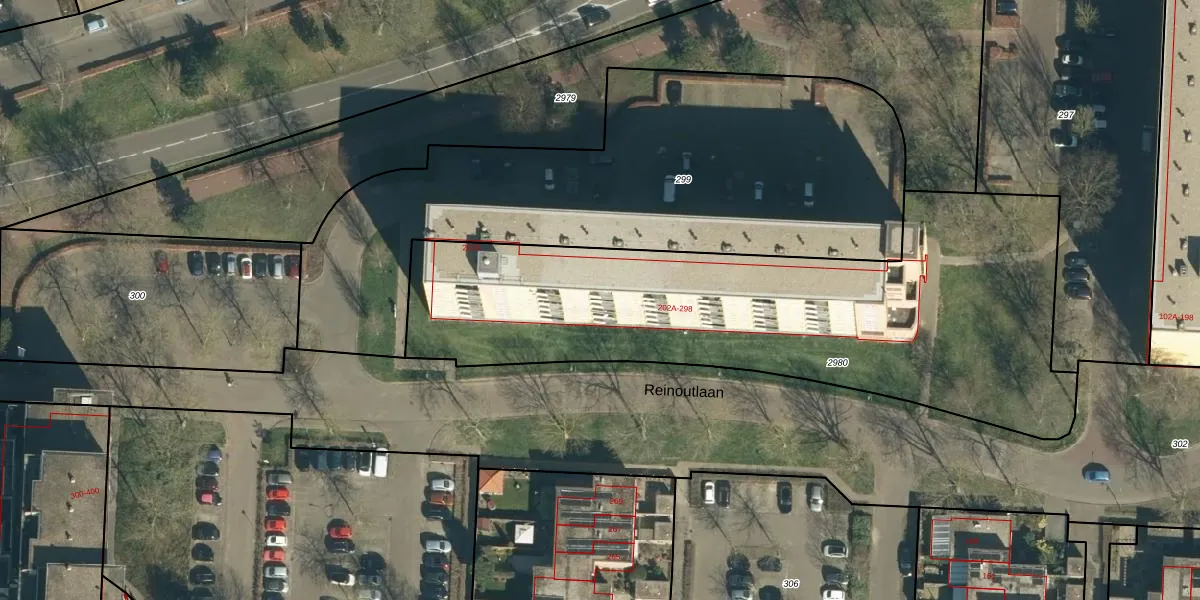 Reinoutlaan 242 is gelegen op kadastraal perceel GDP00F2980. Deze kadastrale aanduiding is uniek en wordt gebruikt door het Kadaster om eigendomsrechten en andere zakelijke rechten vast te leggen. Het perceel maakt onderdeel uit van de kadastrale gemeente Geldrop.