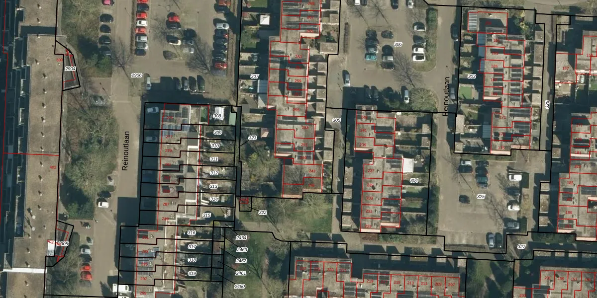 Reinoutlaan 251 is gelegen op kadastraal perceel GDP00F307. Deze kadastrale aanduiding is uniek en wordt gebruikt door het Kadaster om eigendomsrechten en andere zakelijke rechten vast te leggen. Het perceel maakt onderdeel uit van de kadastrale gemeente Geldrop.