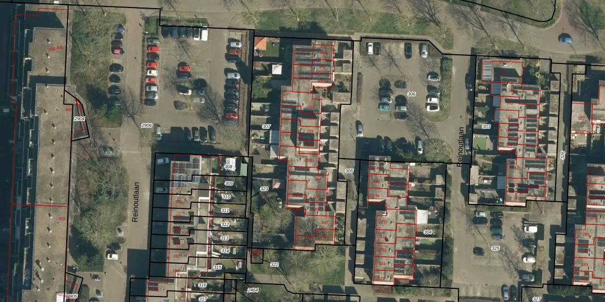 Reinoutlaan 257 is gelegen op kadastraal perceel GDP00F307. Deze kadastrale aanduiding is uniek en wordt gebruikt door het Kadaster om eigendomsrechten en andere zakelijke rechten vast te leggen. Het perceel maakt onderdeel uit van de kadastrale gemeente Geldrop.