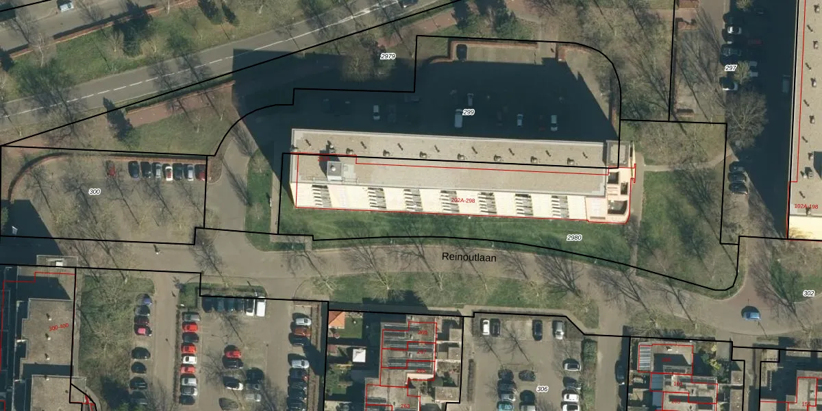 Reinoutlaan 274 is gelegen op kadastraal perceel GDP00F2980. Deze kadastrale aanduiding is uniek en wordt gebruikt door het Kadaster om eigendomsrechten en andere zakelijke rechten vast te leggen. Het perceel maakt onderdeel uit van de kadastrale gemeente Geldrop.
