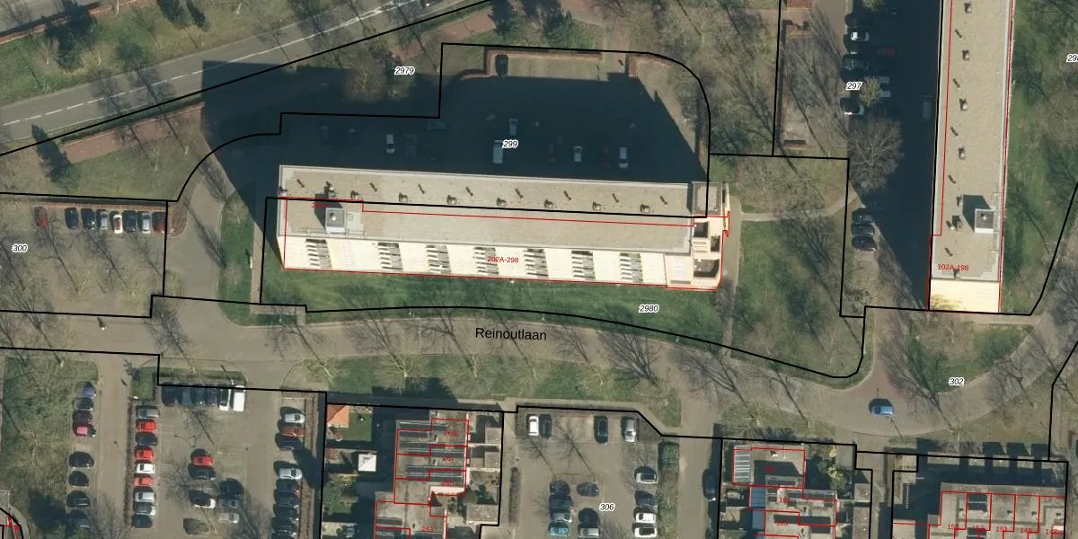 Reinoutlaan 278 is gelegen op kadastraal perceel GDP00F2980. Deze kadastrale aanduiding is uniek en wordt gebruikt door het Kadaster om eigendomsrechten en andere zakelijke rechten vast te leggen. Het perceel maakt onderdeel uit van de kadastrale gemeente Geldrop.