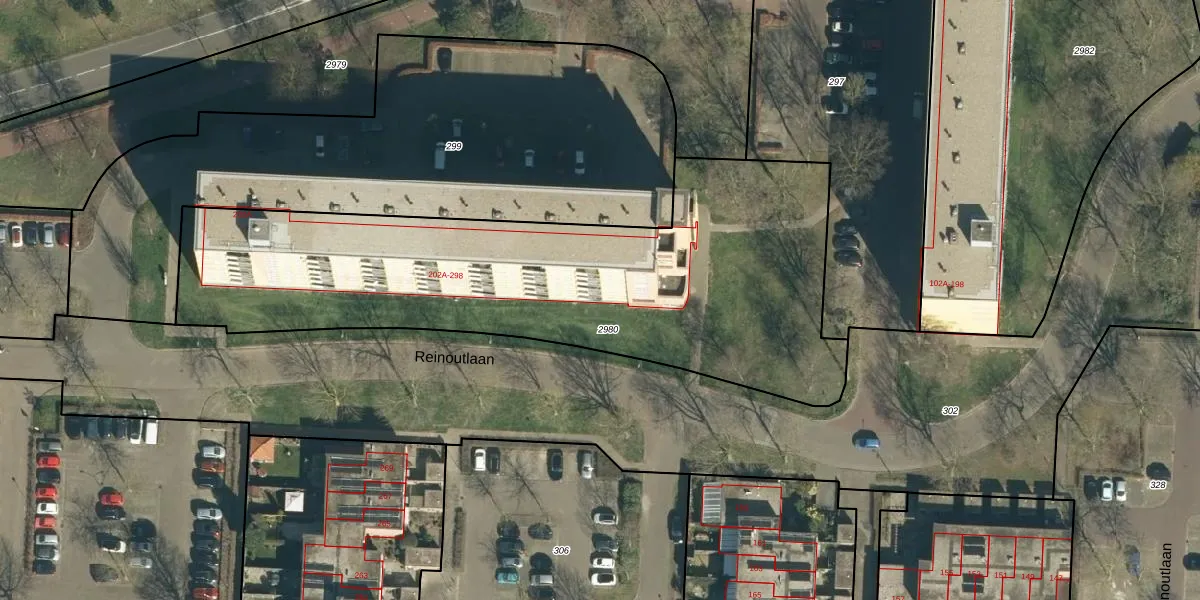 Reinoutlaan 296 is gelegen op kadastraal perceel GDP00F2980. Deze kadastrale aanduiding is uniek en wordt gebruikt door het Kadaster om eigendomsrechten en andere zakelijke rechten vast te leggen. Het perceel maakt onderdeel uit van de kadastrale gemeente Geldrop.